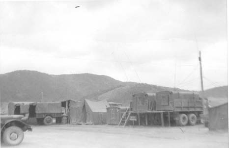 One of our seven detachments throughout Korea with Hqtrs. In Seoul. There are approx. 25 to 35 men in these detachments and they are in direct support of various divisions and corps Areas. This photo shows the communication huts and the power units.