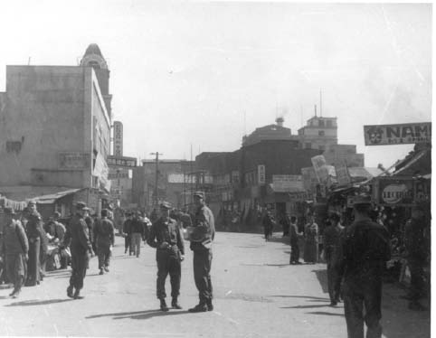This is the Korean market district of Seoul. In this section, Black Market trading is very Prominent and the merchants are very unscrupulous. You find many GI’s here looking for souvenirs to send home or trying to make some easy money on the “market”.