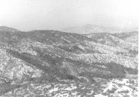Korean Landscape – The country of Korea is very mountainous and rocky. The trees are mostly pine and willow and never grow very high. In some parts the soil is sandy such as the region shown in this photo, taken a few miles North of Seoul.
