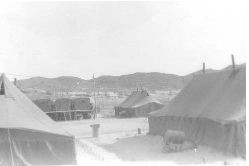 Detachment #3 of 352 Comm. Recon. Co. 1st Marine Div. Area, Korea-1955 Showing sleeping quarters and communications huts. In background is Marine ordinance company