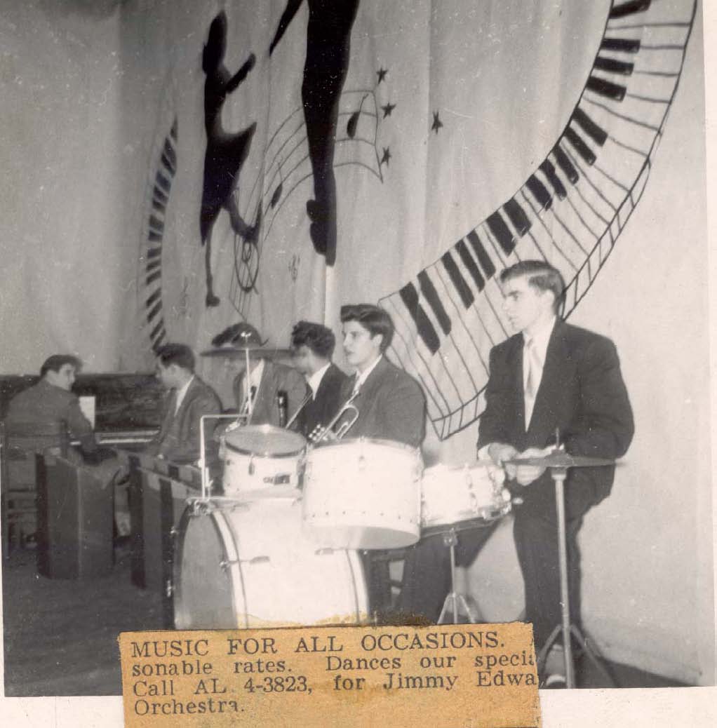 1952 High School Orchestra – Ed Collins, Jr. second from right plays trumpet. The band was named the Jimmy Edward’s Orchestra (a combination of the first names of the two leaders, Jimmy ? and Edward Collins)