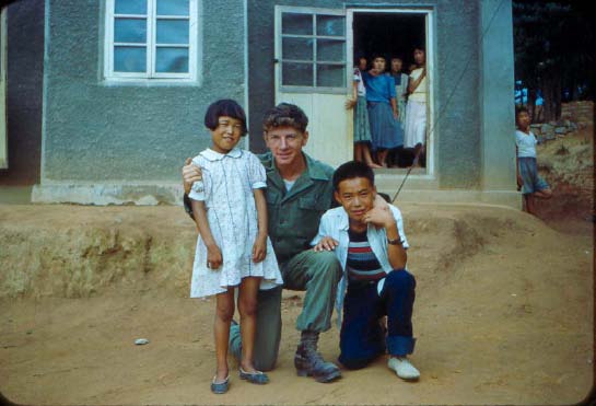 Orphaned children L-R Pete’s sister, Harry Jones, Pete at Orphanage, Korea