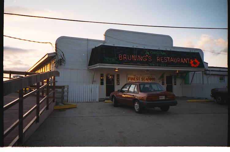 Bruning’s Restaurant has not changed much from the 1940’s, when my Dad would take us there at least once a week. The restaurant serves great mounds of very spicy shrimp and/or crabs on serving platters. Yum, Yum GOOD!!!!! The restaurant is located on Lake Ponchartrain.