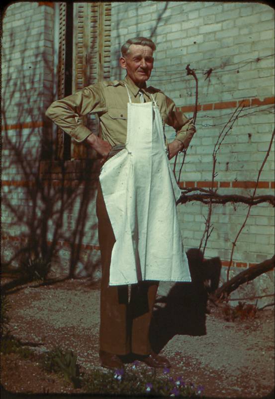 Papa Christelle en tablier, Mars 1948